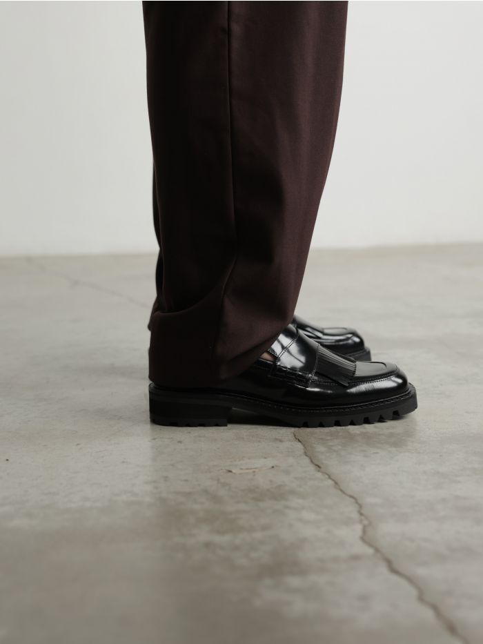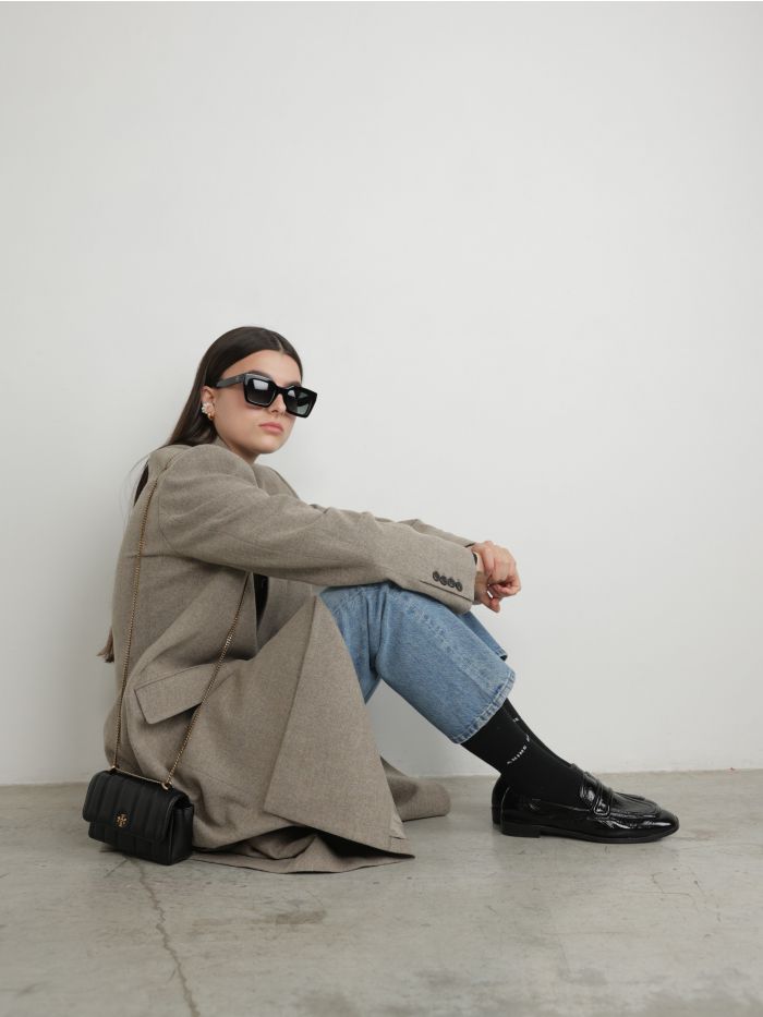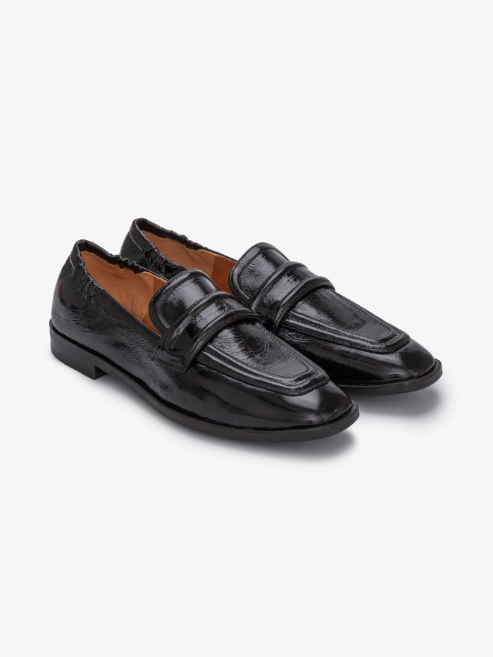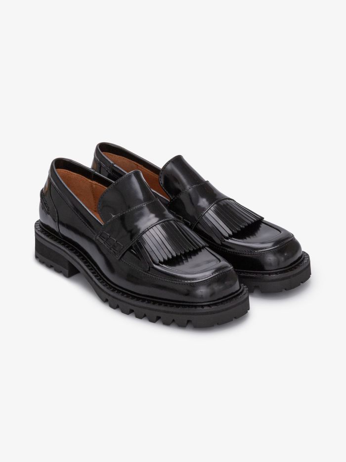נעלי לואפרס בעבודת יד מבית BILLI BI, מותג מקופנהגן המשלב מומחיות איטלקית וייצור ים-תיכוני מוקפד בספרד ופורטוגל. נעלי עור עם עקב גומי עדין, עם סיומת מעוגלת ורצועה מעוטרת אבזם מוזהב בצורת לוגו המותג.