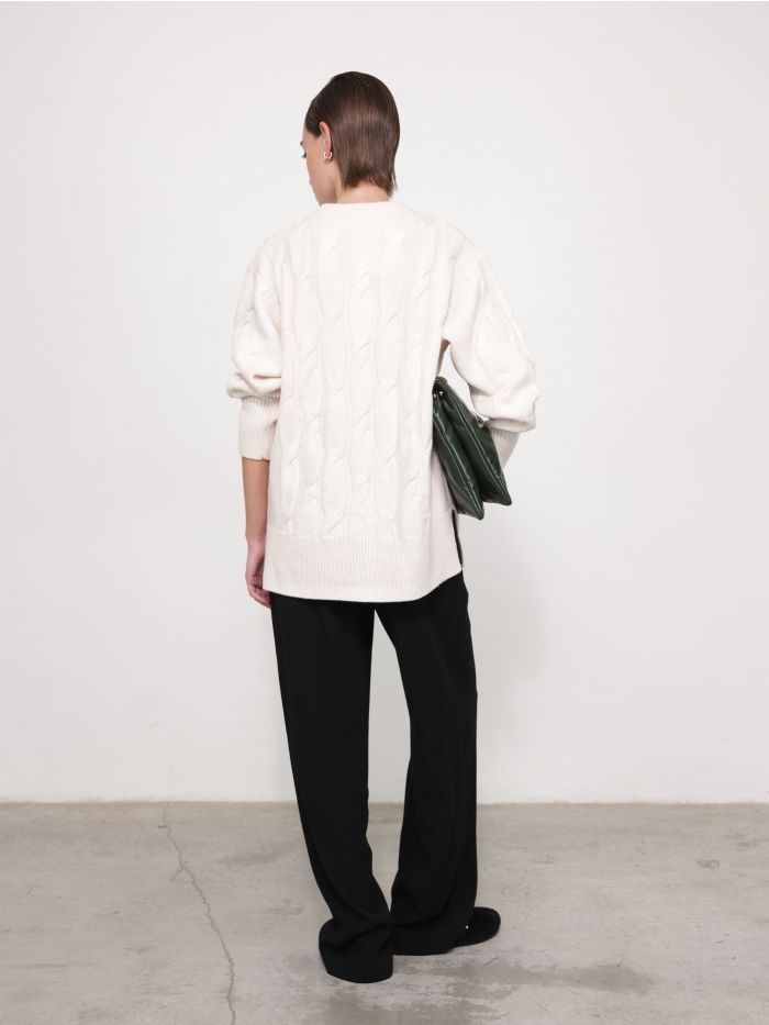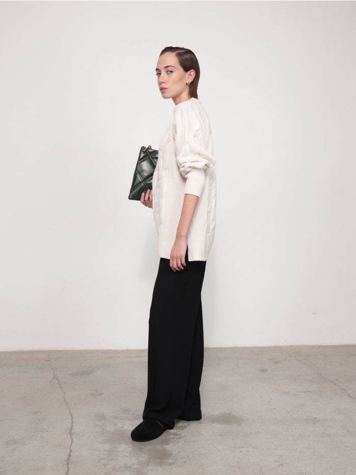 סריג מבית FRAME DENIM מותג המחבר בין הרוח המודרנית של קליפורניה להשפעות אירופאיות. בגזרה קלאסית רפויה ומבד סרוג בדוגמת צמות המעניק לו את הלוק הייחודי.