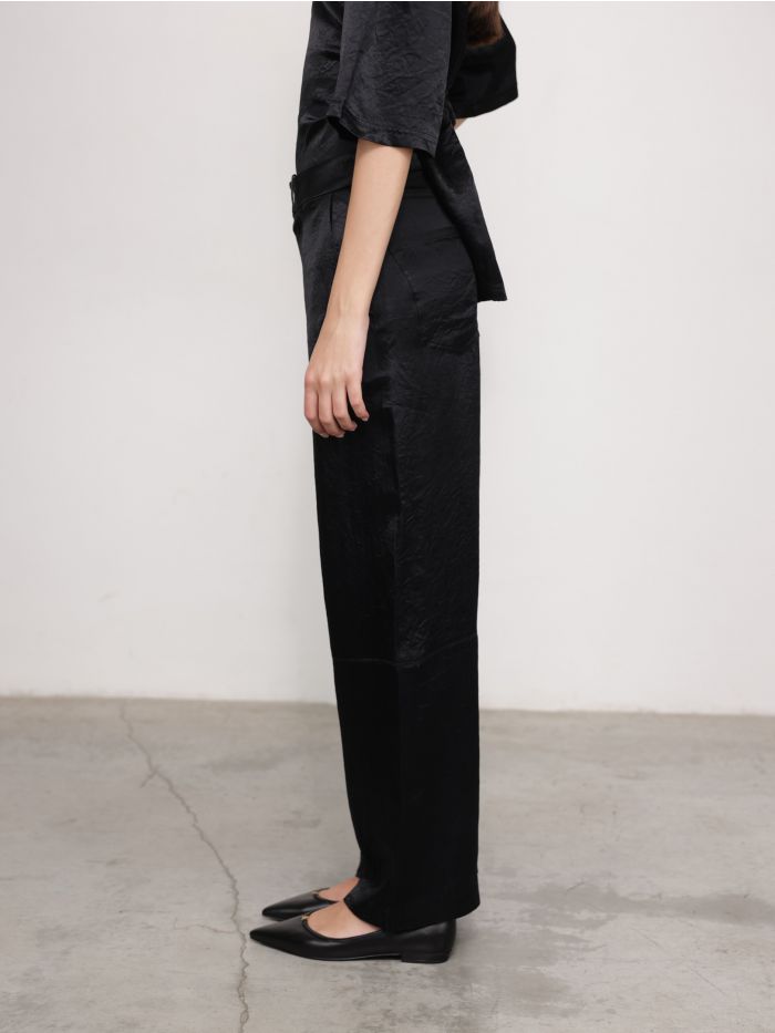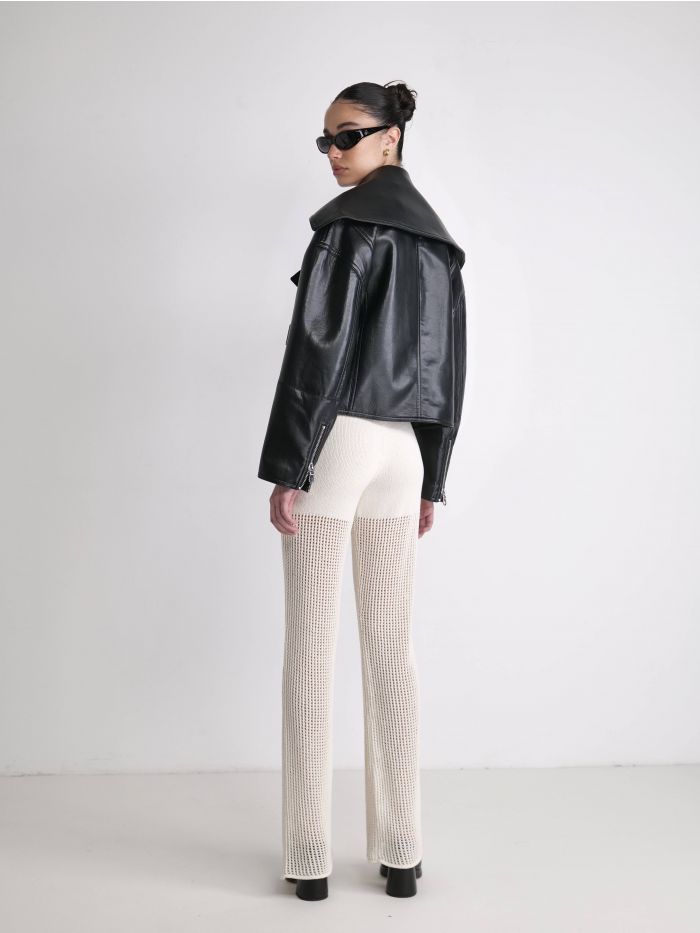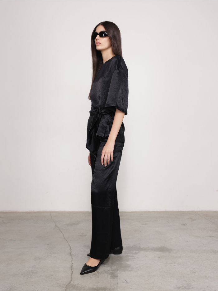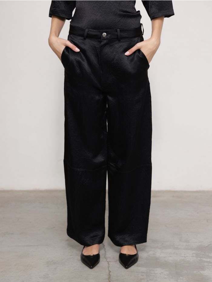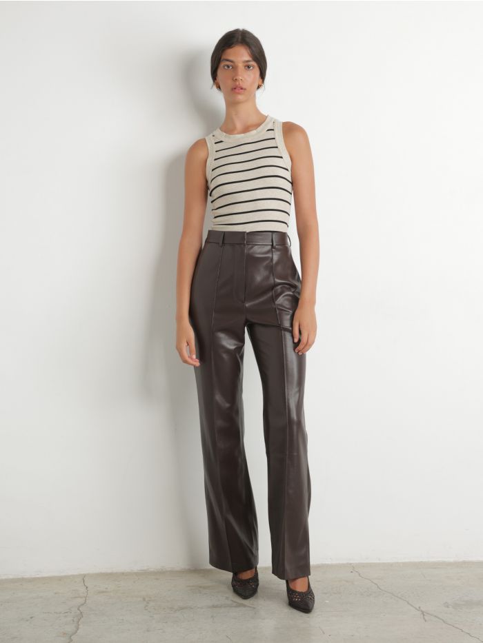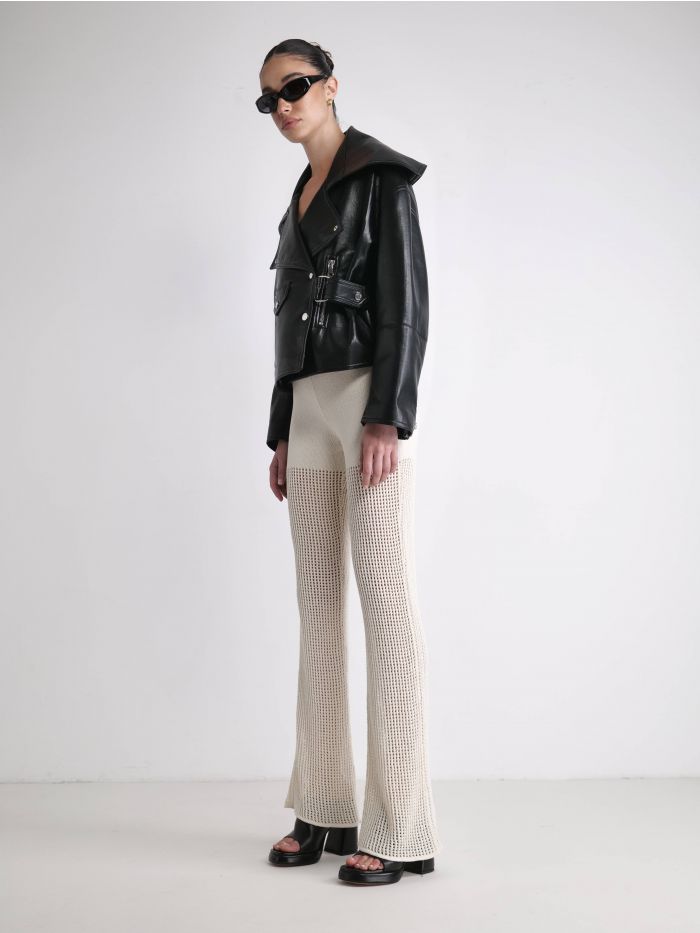 מכנסיים מחויטים מבית NANUSHKA, מותגה של המעצבת סנדרה סנדור, המקפיד לשלב בין גזרות קלילות ובדים עשירים היוצרים הרמוניה בין אלגנטיות מעודנת ואורבניות חדשנית. המכנסיים עשויים מבד חליפות קליל, בגזרה גבוהה עם סיומת בוטקאט מתאימות ליום או לערב למראה אלגנטי בלתי מתאמץ.