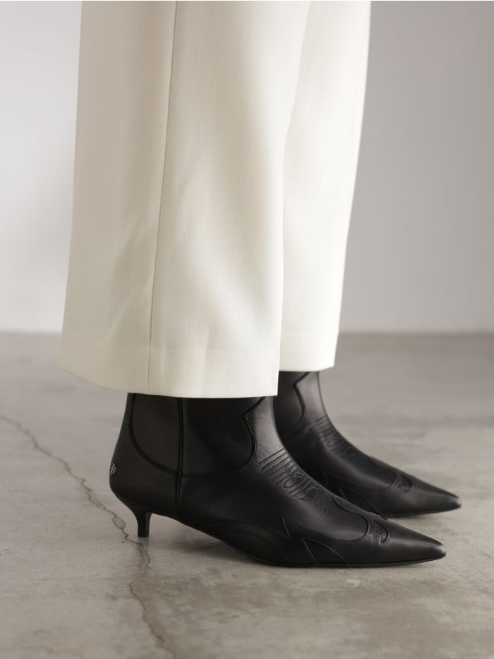 מגפוני גרב עם חרטום מחודד, מבית ANINE BING המעצבת הסקנדינבית שהקימה אימפרית אופנה בלוס אנג׳לס משם ממשיכה להשתלט על העולם.