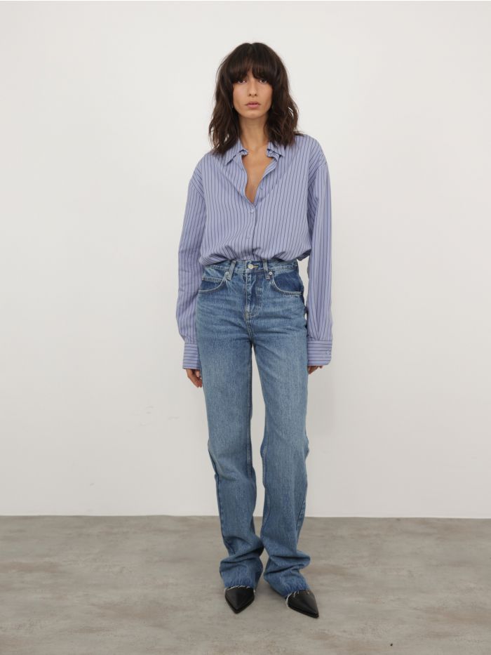 תיק יד מבית ANINE BING, המעצבת עם השורשים הסקנדינביים שבנתה אימפריית אופנה בועטת בלוס אנג׳לס ומשם ממשיכה להשתלט על העולם. התיק האייקוני בעל תא מרכזי הנסגר בסגירה מגנטית עשוי עור נאפה ממוחזר, רצועת כתף מעוטרת חוליות זהובות ומונוגרמת הלוגו האייקוני של המותג בחזית.