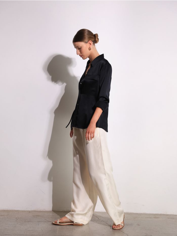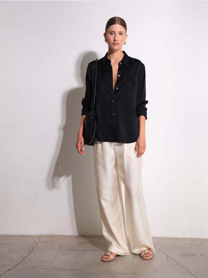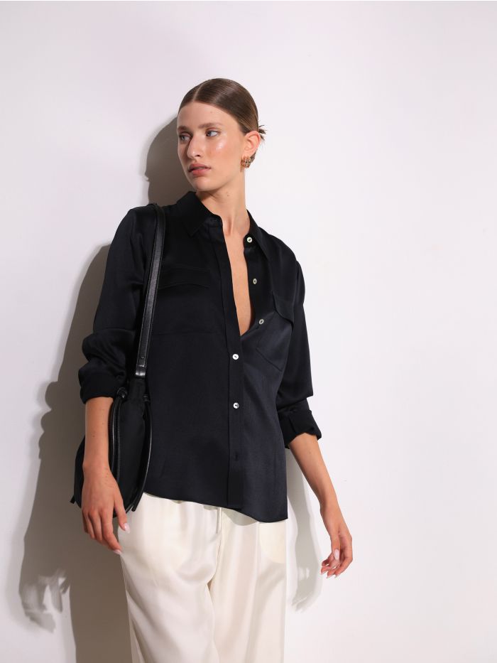 חולצה מבית VINCE, המותג מלוס אנג׳לס שידוע ביכולתו להפוך כל פריט בייסיקי ל-Super fine. חולצה ארוכה עם מראה מחויט ורך כאחד, עשויה בד ריב דק וצמוד בגזרה מחמיאה. כוללת צווארון קלאסי, כפתורים לאורך ולוק סופר נשי ונינוח.