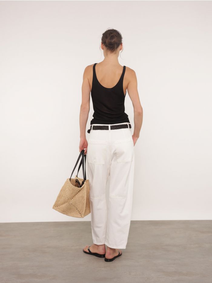 חגורת עור מבית Dragon Diffusion, מותג שמחזיר לקדמת הבמה טכניקות מסורתיות, סבלנות של פעם ואסתטיקה שאינה תלויה בזמן. חגורת עור קלועה בעבודת יד, עם רצועות שזורות בצפיפות למראה עשיר ומחוספס. אבזם מתכתי בגוון זהב מעודן משלים את העיצוב – תוספת אלגנטית ומלאת נוכחות.