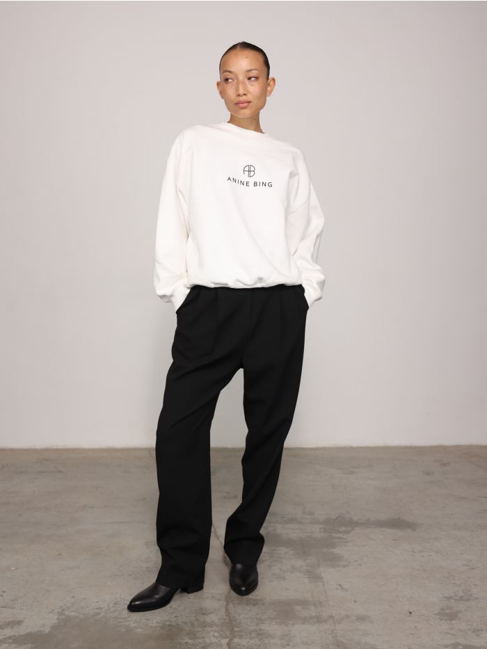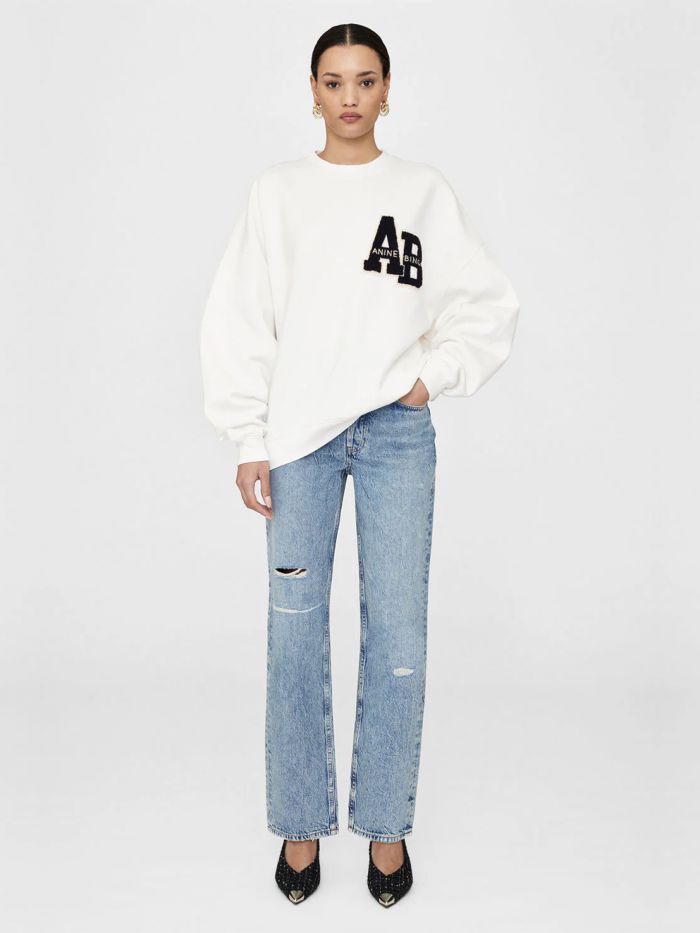 סווטשירט מבית ANINE BING, המעצבת עם השורשים הסקנדינביים שבנתה אימפריית אופנה בועטת בלוס אנג׳לס ומשם ממשיכה להשתלט על העולם. בגזרת אוברסייז נוחה עם שרוולים ארוכים, צווארון עגול ועם גרפיקה של ANINE BING PARIS בחלקו הקדמי.