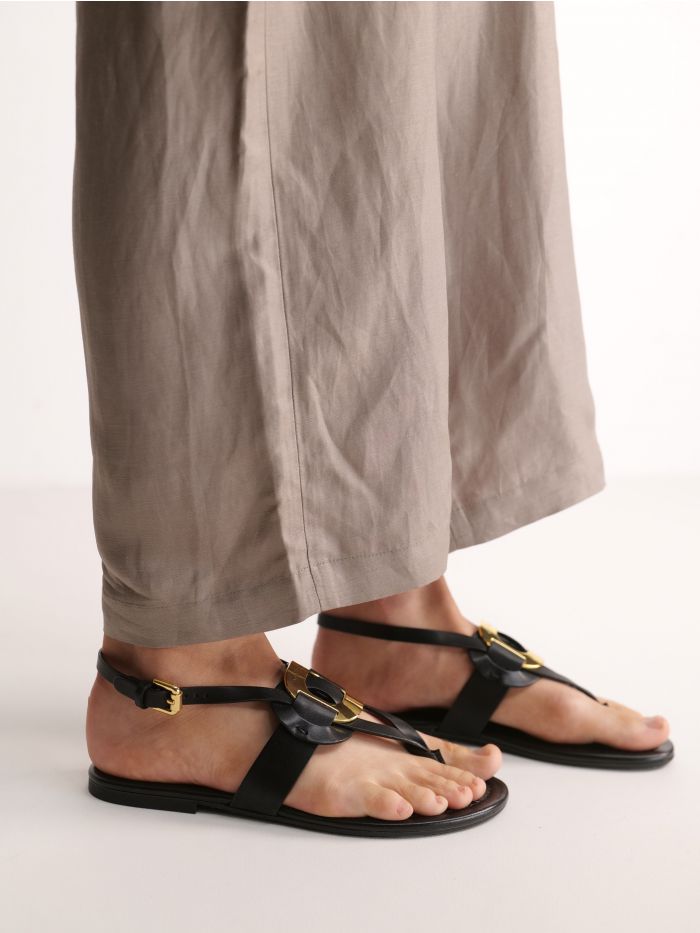 סנדלים מבית SEE BY CHLOE העשויות 100% עור עם רצועות מצטלבות וסולית גומי. הסנדלים מגיעים בשלושה צבעים שונים.